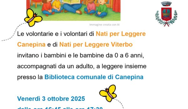 I volontari di Nati per Leggere di Canepina, insieme ai volontari di Nati per Leggere di Viterbo, vi invitano a partecipare all’evento: “Nati per Leggere …